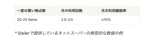 典型的なネットスーパーサービスの代表的なKPIを見てみましょう。