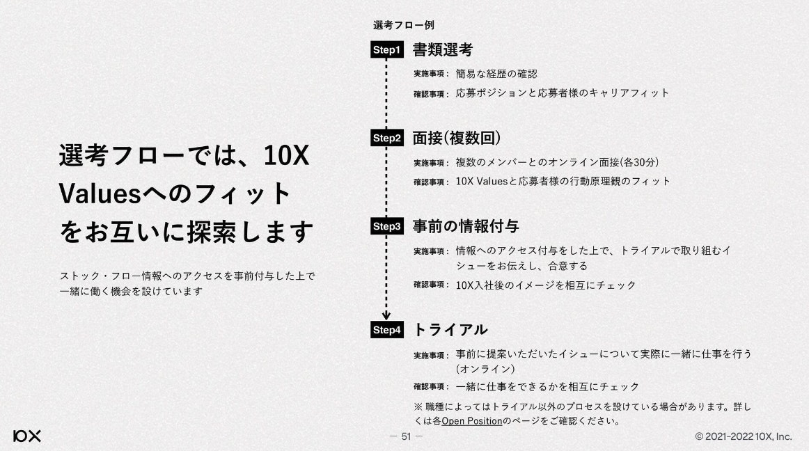 10Xにおける選考フローの詳細(10X Culture Decより)