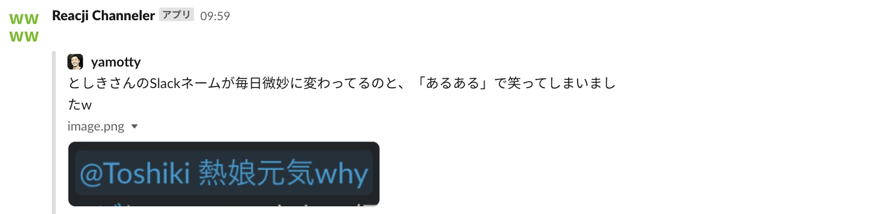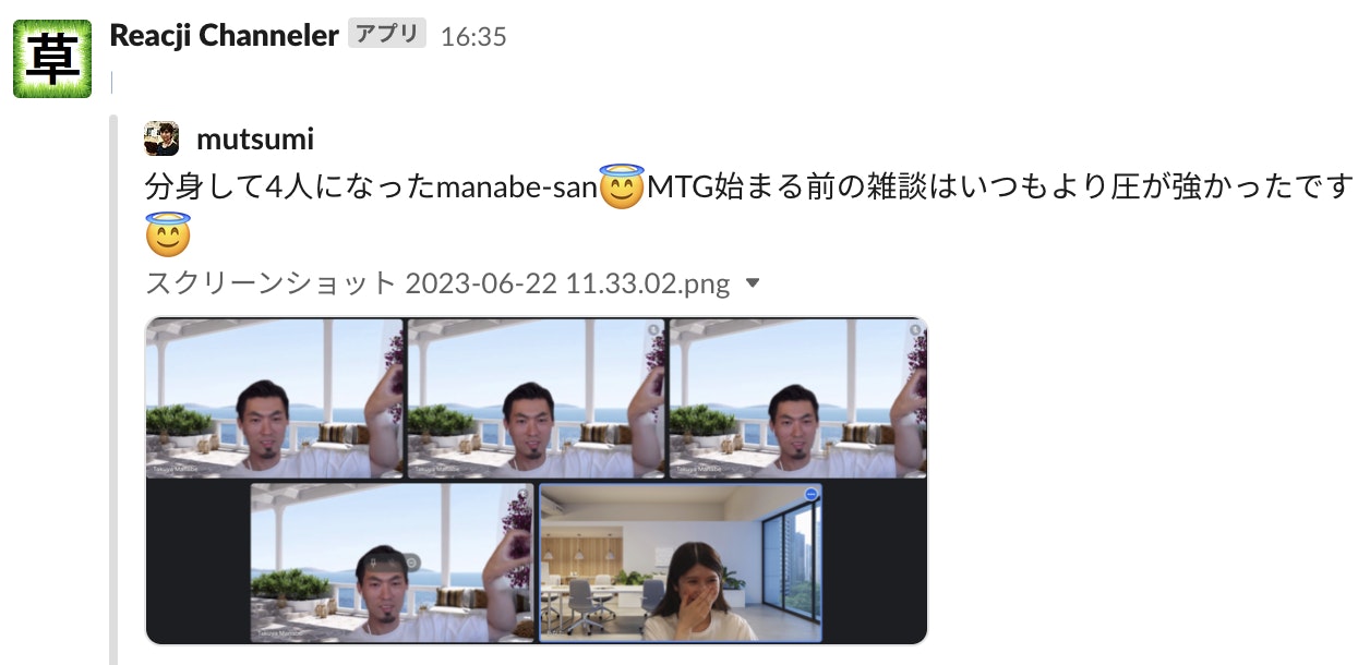 社外の人から「10Xって雑談とかしてなさそう」みたいなことをたまに言われるのですが、意外とSlackでも雑談は飛び交っています。最近だと#z_kusaというSlackチャンネルができて、そこには「草」とか「wwww」のリアクションが付いたポストが自動で流れてくるので、疲れた時などにときおり眺めるとほっこりします(笑)