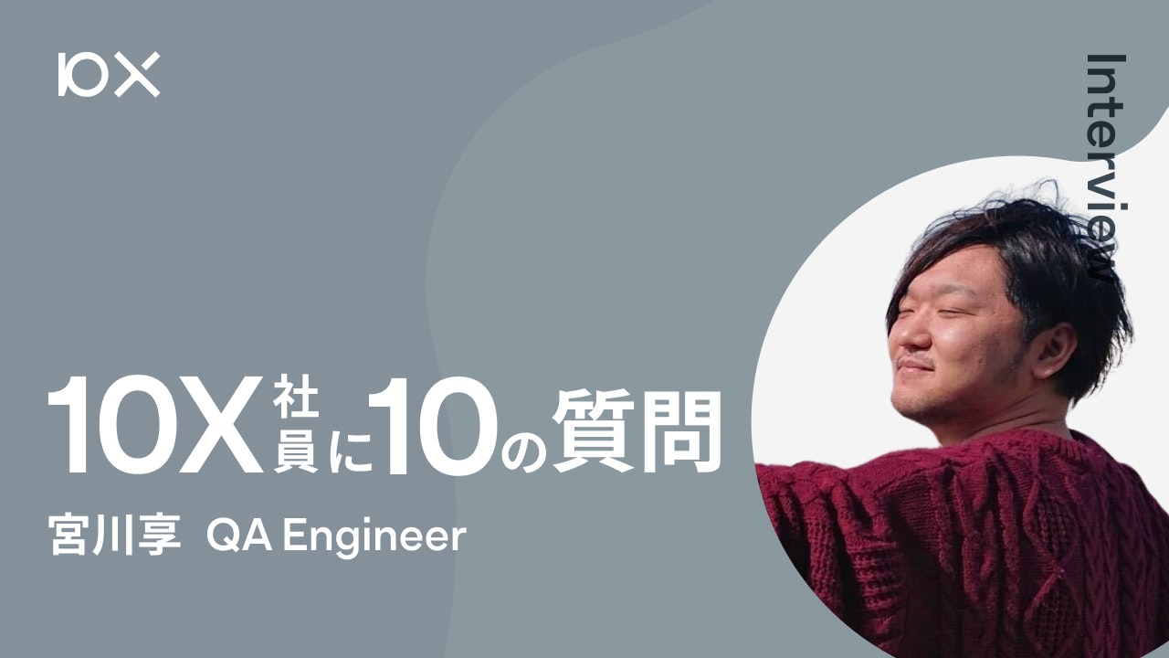 10Xの社員に10の質問をする「10X10Q」。一人ひとりの社員からの回答から、10Xの特徴やメンバーの特性を知るきっかけになればうれしいです。今回は、QA Engineer 宮川 享さんに10の質問に答えていただきました。それでは早速いってみましょう。10X10Q、スタート!