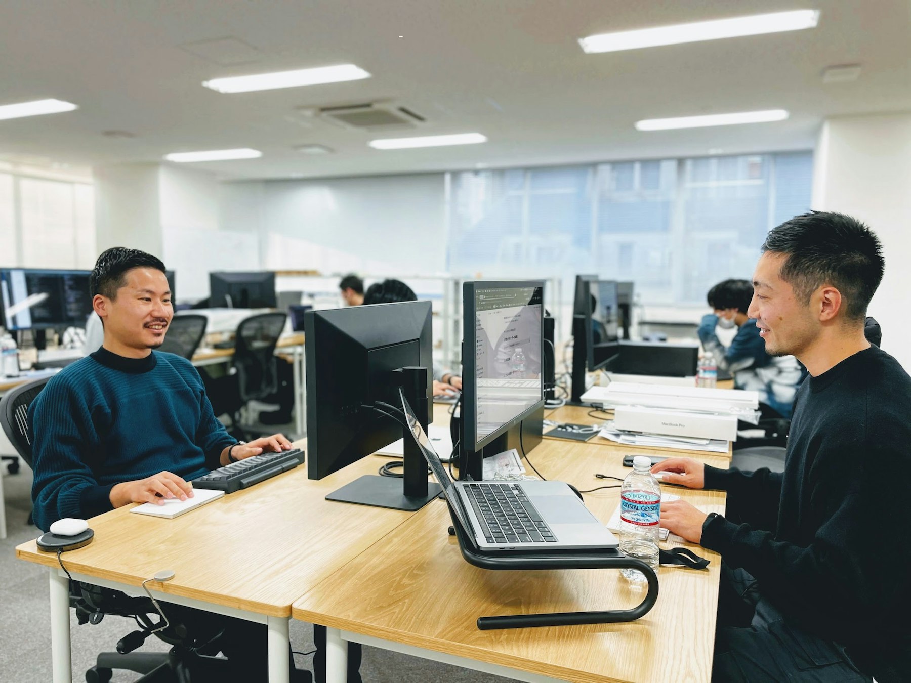ソフトウェアエンジニアの三宅(写真左)も、デザインを作ることも。各メンバーが領域横断的に仕事をしています。