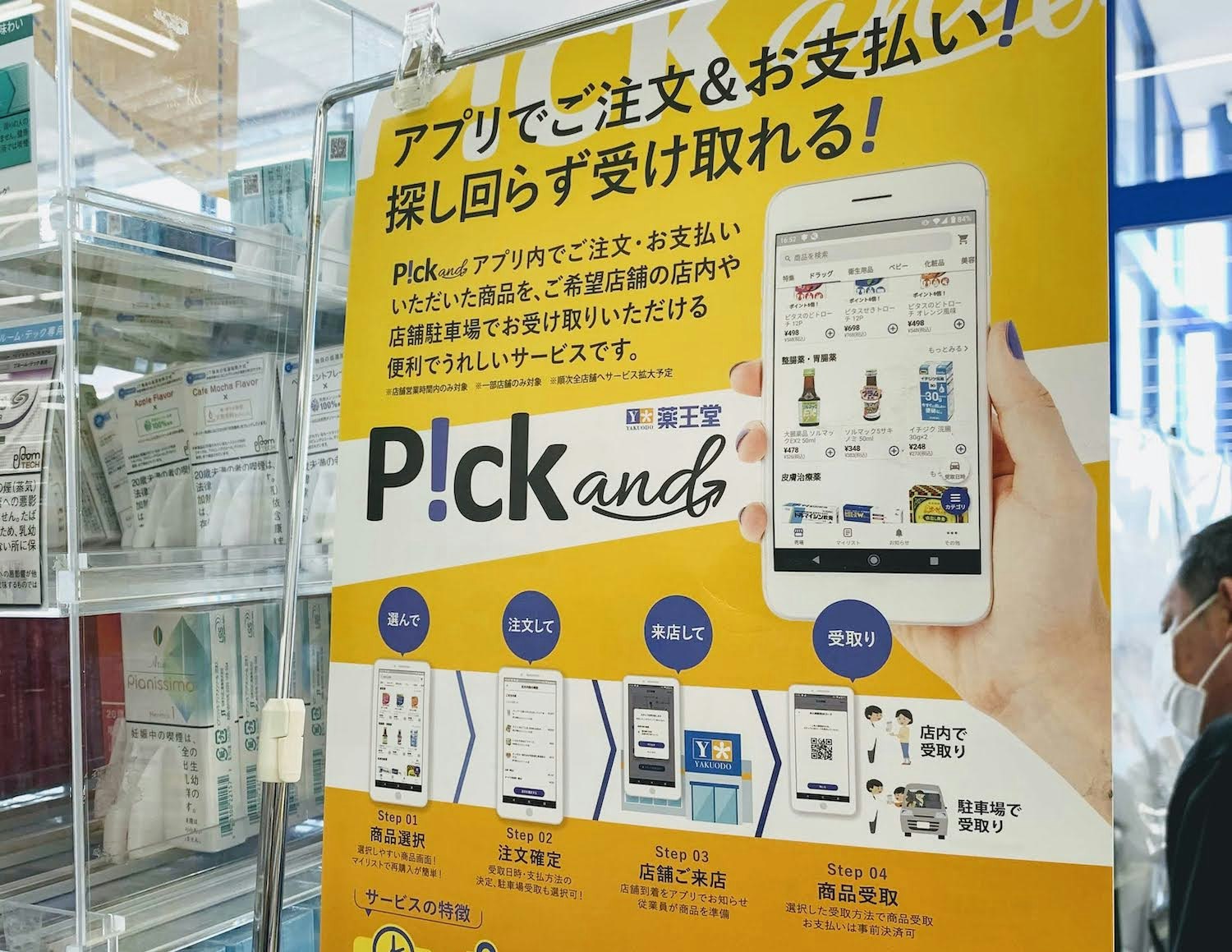 薬王堂さんの店内ではPOPで「P!ck and」のプロモーションも。