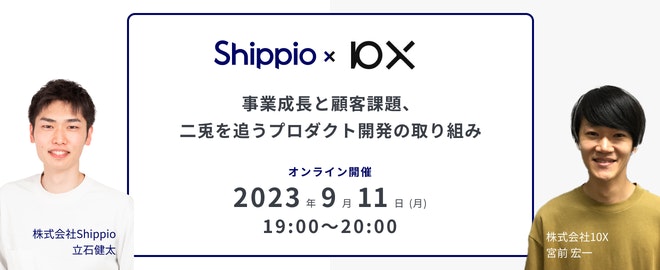 ## イベントについて 国際物流領域のDXを推進する株式会社Shippio、小売業界のDXを推進する株式会社10Xによる合同イベントです。今回は、レガシー産業における事業成長と現場の顧客が抱える課題の解決をどう両立させるのか、その難しさと面白さについて日々のプロダクト開発における取り組みを交えながらお話します。 ## イベント詳細 * 基本情報 * 日時: 2023年9月11日(月) 19:00 ~ 20:00(最大20:20までアフタートークを予定しています) * 会場 * オンライン(参加用リンクは別途ご案内します) * 費用:無料 * 参加...