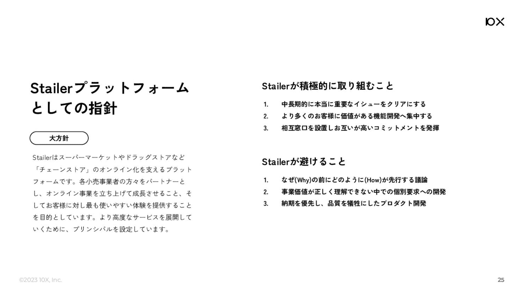 前回は10Xがどのようにプロダクト機能のロードマップを検討し、そして事業を推進するために具体的にどのようなロードマップを想定しているかを書きました。こちらの記事を読んでみてください。 そして続編となる今回は、 Stailer アプリケーションロードマップに対し、全社的にどのようにインプットとなる情報を与え、統合し、ガ