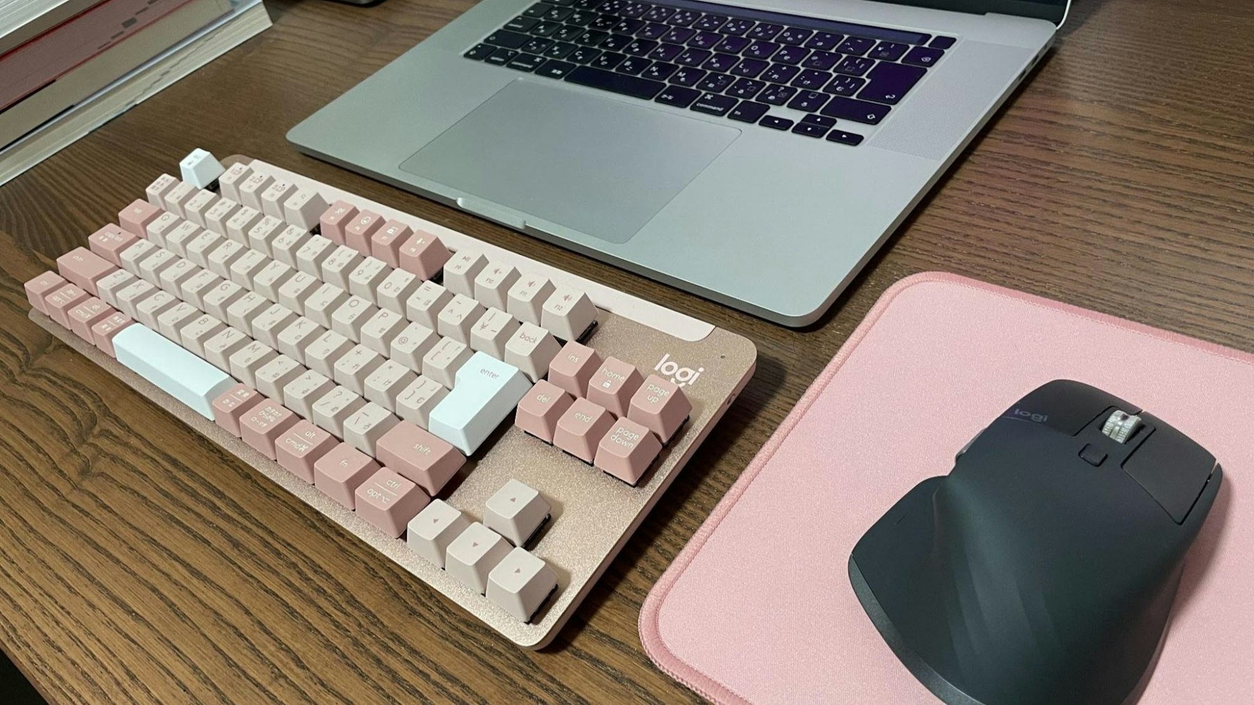 推しプロダクトは、Signature K855ワイヤレス メカニカルキーボードです!メカニカルキーボードなのでタイピングしていると楽しいです。お手頃価格で、最近出たローズカラーはポップな感じでいいです。Logi Options+というアプリを使うと、ファンクションキーに好きな操作を割り当てられ、しかもアプリごとにカスタマイズできるのでおすすめです。マウスはlogicoolのMX Master 3sが使いやすいです。