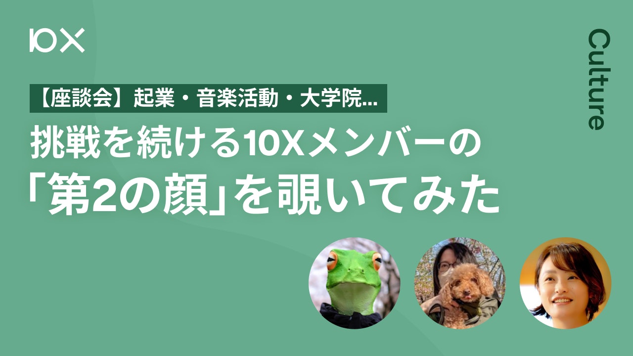 そんな10Xでは音楽活動・大学院進学・起業……など、業務外でもさまざまな活動にコミットしているメンバーがいます。今回はそうしたメンバーの座談会を実施。日々10Xでの業務を続けながら、どうやって個人のやりたいことを実現しているのか、ざっくばらんに聞いてみました。