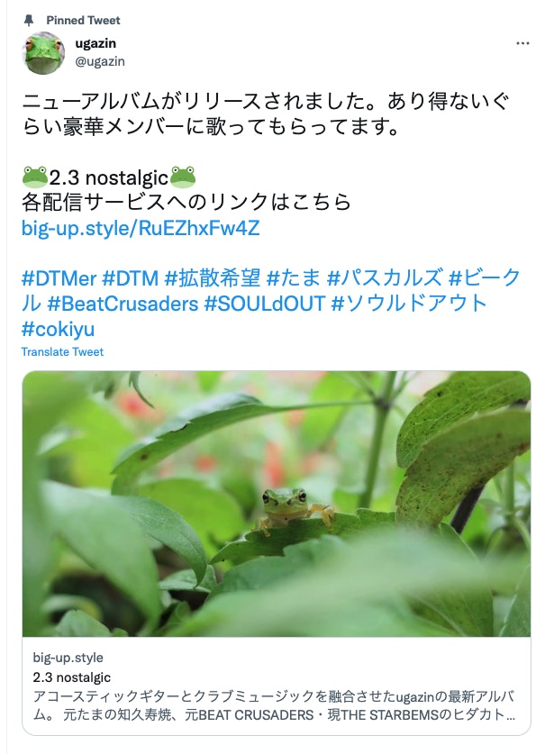 宇賀神:私も世の中に対しては結構思うところがあります。日本では、個人でやっている音楽制作などはあくまで本業の下に位置している感じがあるんですよね。でも僕にとっての音楽は、英語でいうところの「ライフワーク」であって「趣味以上・副業未満」なものなんですよね。