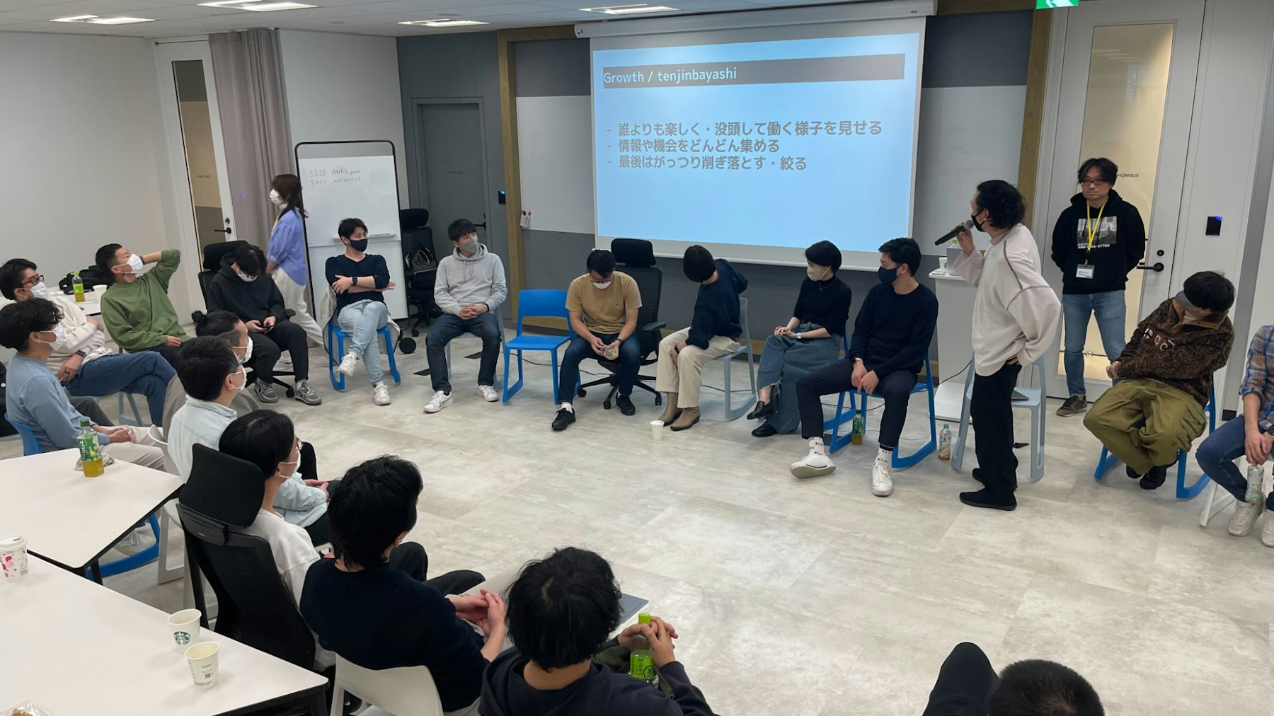 テーマ1、テーマ2まではそれぞれが創り上げたものをチーム内で発表。テーマ3に関しては、チーム内で意見を出し合いながら「10Xらしいマネージャー像」を創り上げ、全体で発表する場を設けました。