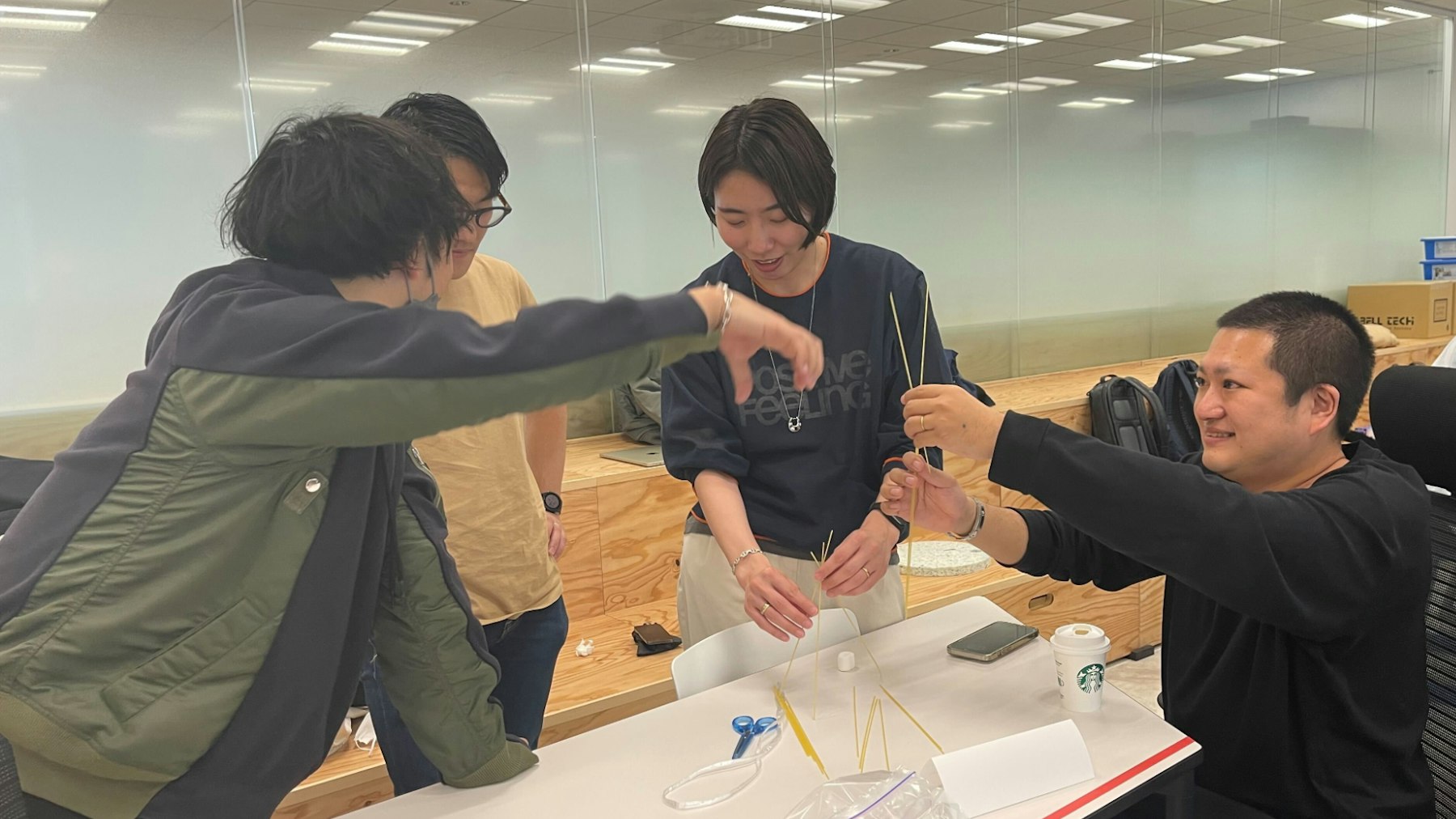 普段なかなか話す機会のないマネージャー同士がチームを組んでいることもあり、まずはアイスブレイク。マシュマロチャレンジを開催!