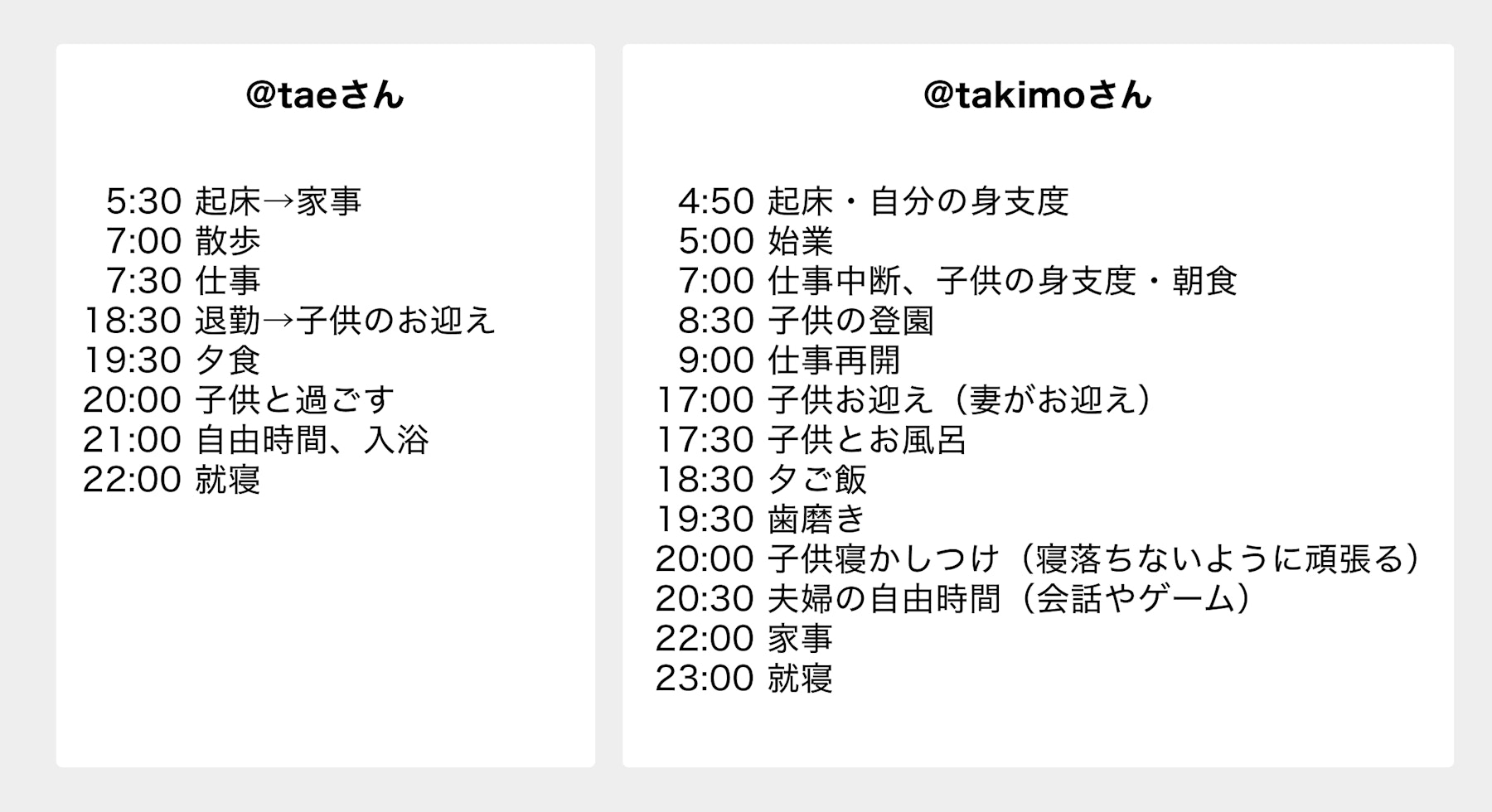 @taeさんと@takimoさんの平均的な1日