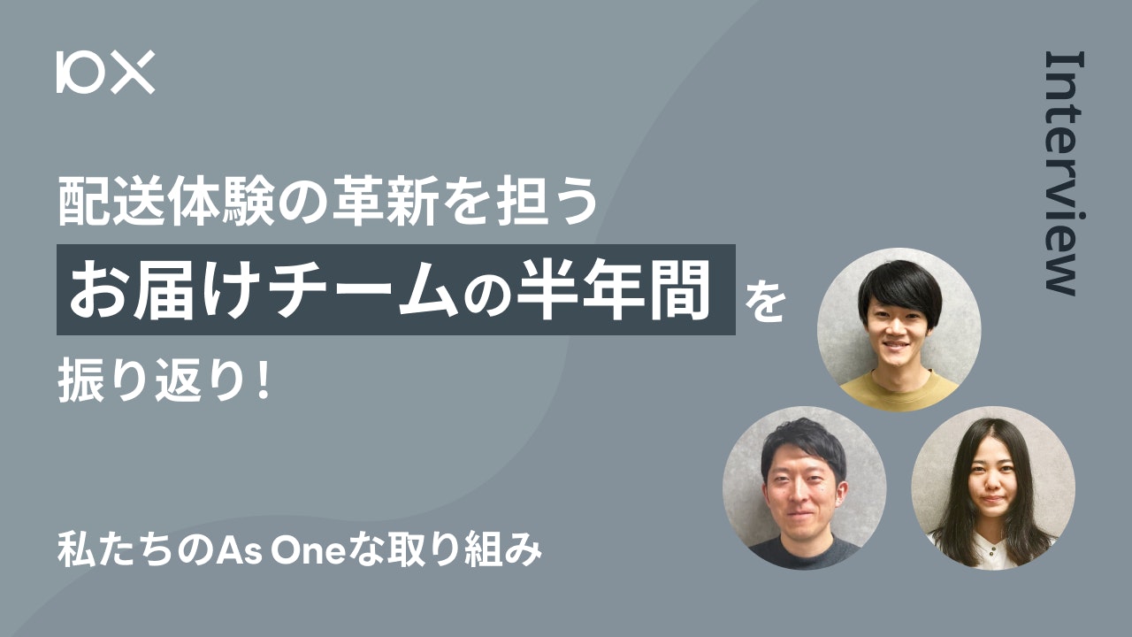 このシリーズでは、部署や職種を横断して「As One Team」を体現しているメンバーに、10Xのリアルな仕事現場を伺っていきます。今回は、お届けチーム、ソフトウェアエンジニアの松浦さん(teshiさん)とPdMの宮前さん(koichi-mさん)。そして、オペレーションマネージャーの野地さん(nojiさん)の3名に伺いました。