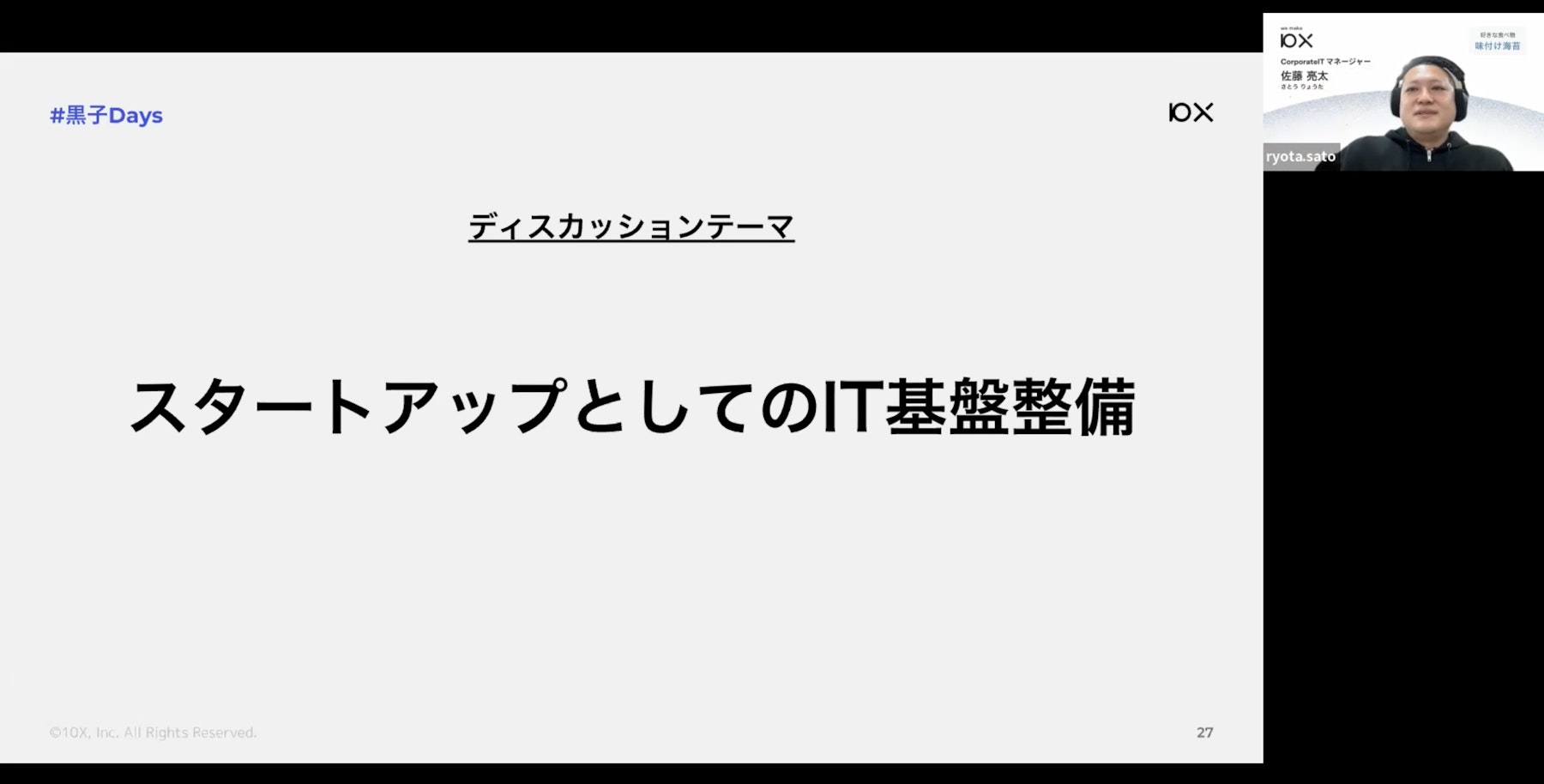 佐藤:10Xは皆様が日常的に使うスーパーマーケットやドラッグストアがお客様になります。お客様はいずれも大企業なので、我々に求めるセキュリティレベルは高いです。そういった背景もあり、10Xの経営陣も社内ITやセキュリティへの投資は積極的に行う姿勢がありました。また、10Xでは中長期計画があり、2年後にどれくらい社員が増えるのかを予想しています。私の場合は、中長期計画をもとに「これくらい人が増えるなら、社内システムはこんな感じで進めたいです」と話すようにしていました。