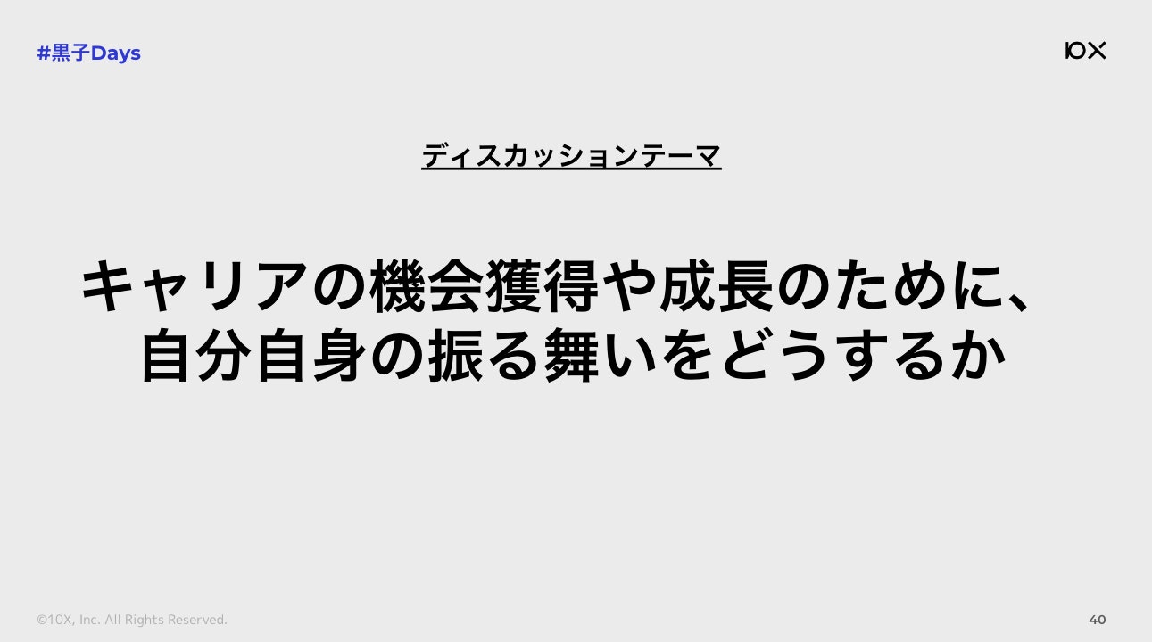 小酒井:次のテーマは「キャリアの機会獲得や成長のために自分自身の振る舞いをどうするか」です。先に津田さんから話していただきましょうか。