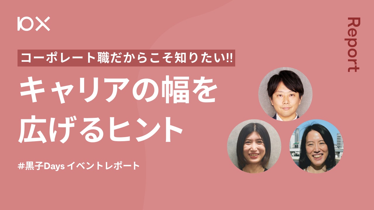 「急成長スタートアップの裏側を支えるコーポレート部門大集合」ということで開催されたオンラインイベント「黒子のコーポレート大激論 Days」。今回は「コーポレート人材のキャリアの広がり」をテーマにしたセッションのレポートをお届けします。登壇したのはコーポレート領域を中心に採用支援などを行うWARCの執行役員である加藤健太氏と10XのCorporate Operations部部長である津田麻美子、モデレーターは同じく10XのHR本部に所属する小酒井睦美。コーポレート職のキャリアを、エージェント・現場それぞれの目線から深堀りしました。