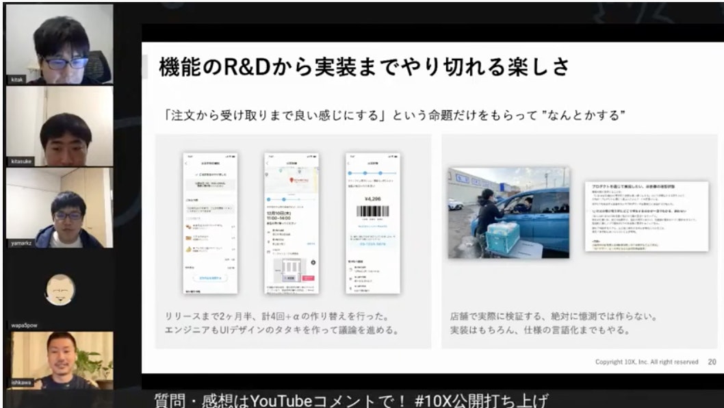 役割・領域を超えた働き方ができると仕様と実装の不一致が起きにくく、、その分コミュニケーションコストが下がり、実装スピードが上がります。10Xの仕事のスピード感は、こういったところから来ているのだなと感じますね。
