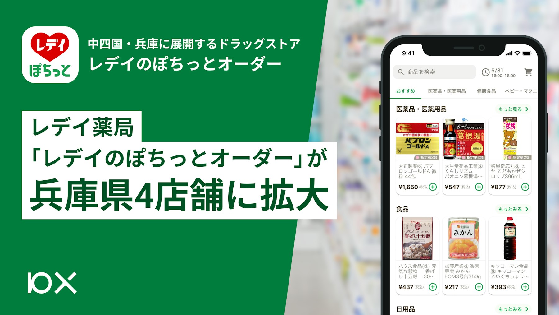 株式会社10X(本社:東京都中央区、代表取締役CEO 矢本 真丈、以下10X)の小売ECプラットフォーム「Stailer(ステイラー)」を通じて提供するレデイ薬局「レデイのぽちっとオーダー」は、2023年9月に愛媛県におけるサービス開始以来お客様から好評をいただき、2月1日(木)より兵庫県の4店舗にサービスエリアを拡大します。また、3月には岡山県でもサービス展開を予定しています。