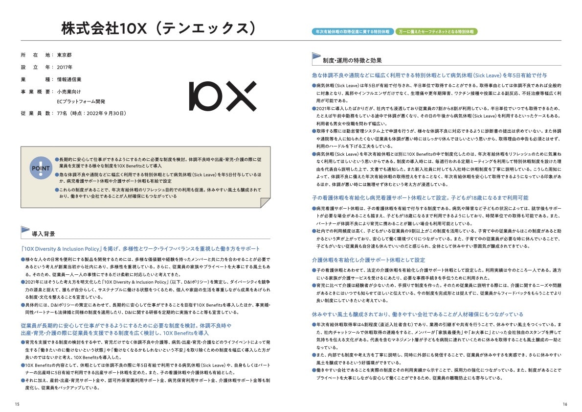 厚生労働省「特別休暇制度導入事例集2022」にて10Xの事例が掲載されました