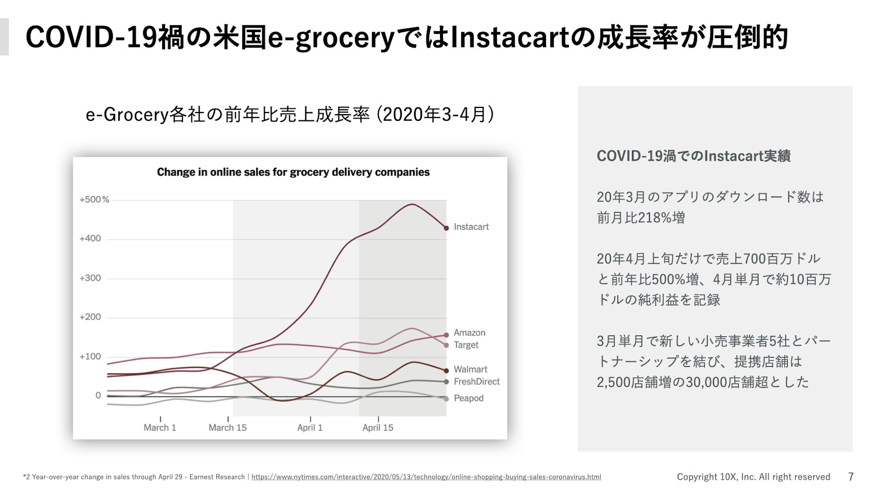 COVID-19禍の米国e-groceryではInstacartの成長率が圧倒的