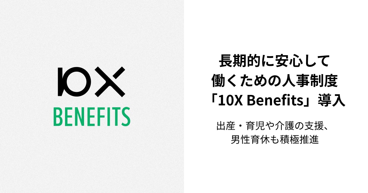 チェーンストアECの垂直立ち上げプラットフォーム「Stailer」を展開する株式会社10X(本社:東京都中央区、代表取締役CEO 矢本 真丈、以下10X)は、 社員が長期的に安心して働ける環境を整えることを目的に、人事制度「10X Benefits」を導入しました。