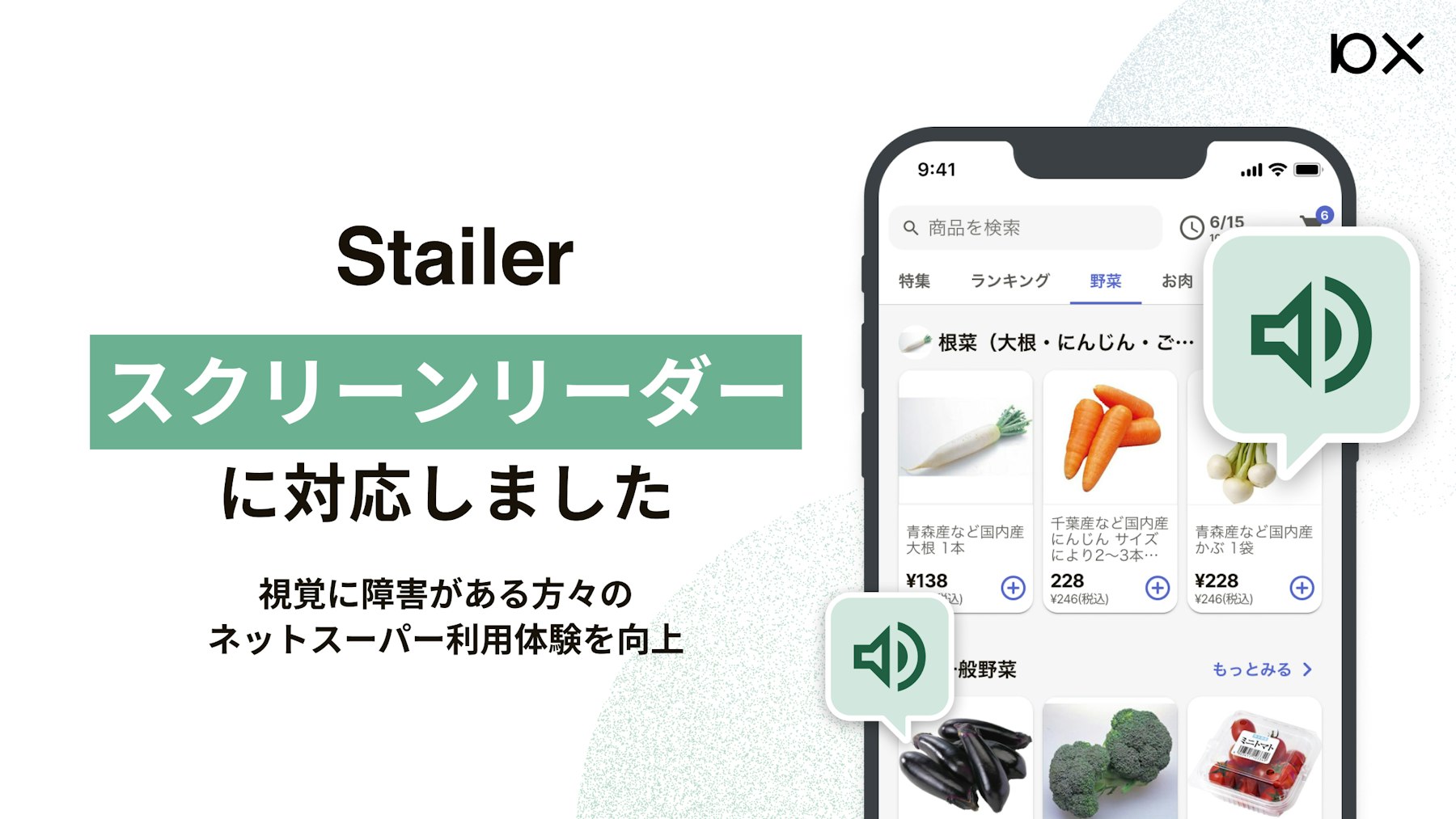 小売チェーン向けECプラットフォーム「Stailer」を提供する株式会社10X(本社:東京都中央区、代表取締役CEO 矢本真丈、以下10X)は、視覚障害者の方により便利なネットスーパー利用体験を提供すべく、スクリーンリーダー(音声読み上げソフト)対応を実施しました。