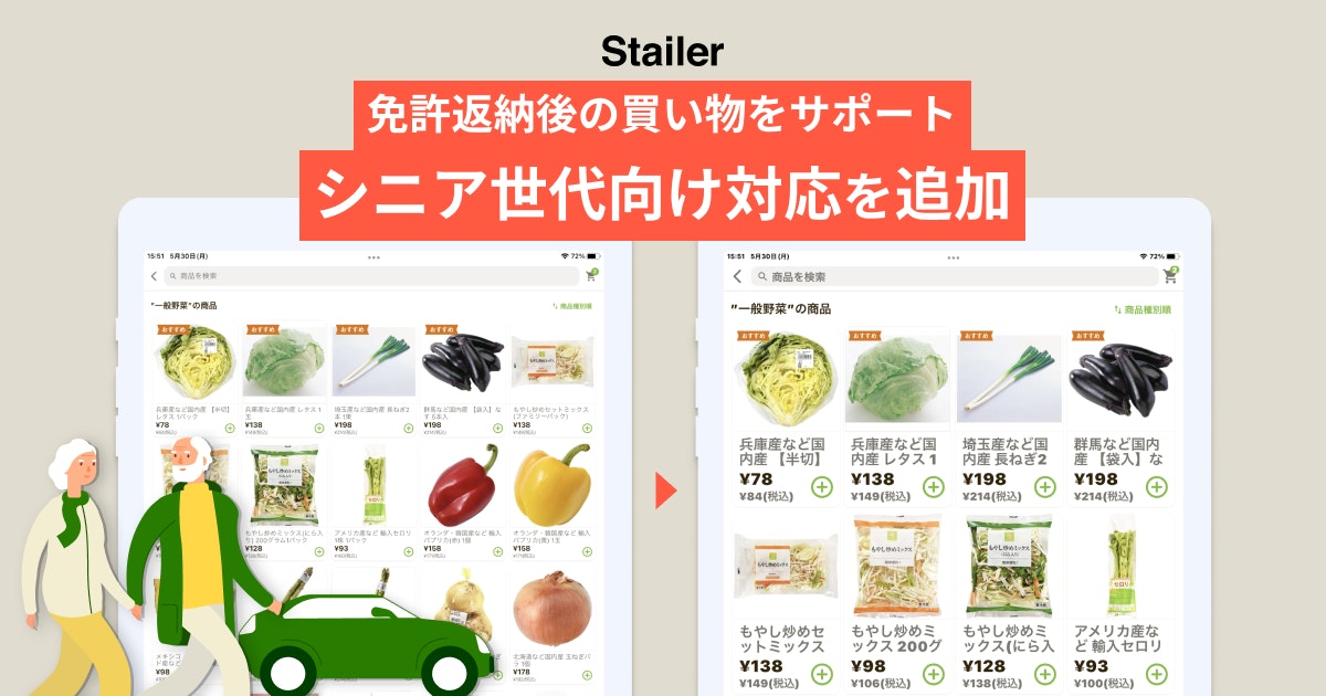 ECプラットフォーム「Stailer」にシニア世代向け対応を追加 〜免許返納後のネットスーパー利用を促進。安心して買い物が可能に〜