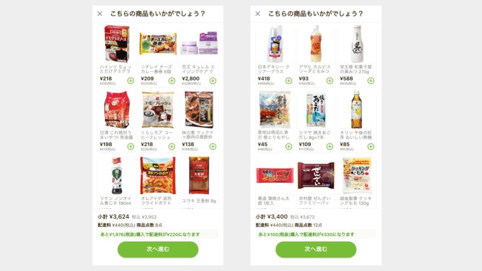 店舗でのお買い物では、お目当ての商品を探している途中に「忘れていたけれど必要なもの」、「絶対に必要ではないけれど心躍る商品」など商品との出会いがたくさんあります。しかしネットスーパー・ネットドラッグストアは店舗に比べて商品の一覧性が低いため、目的の商品を効率的に購入する”いつもの買物”には便利である一方、目的以外の商品が目に入って購入する”偶然の出会い”の創出が難しいという課題がありました。