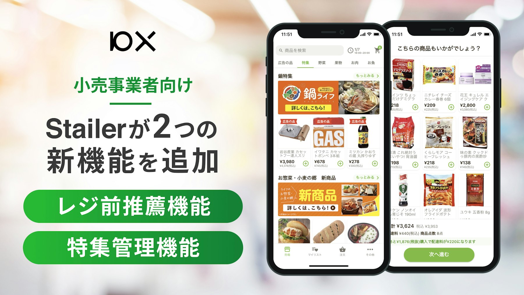 株式会社10X(本社:東京都中央区、代表取締役CEO 矢本 真丈、以下10X)は、同社が提供する小売ECプラットフォーム「Stailer(ステイラー)」を利用する小売事業者向けに、AIが”ついで買い”をおすすめする「レジ前推薦機能」と、季節商材等おすすめ商品の販促機能「特集管理機能」の提供を開始しました。