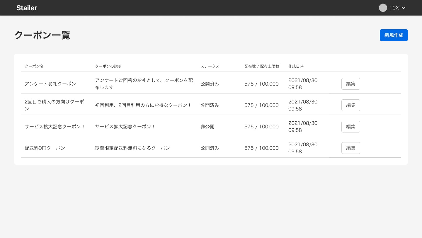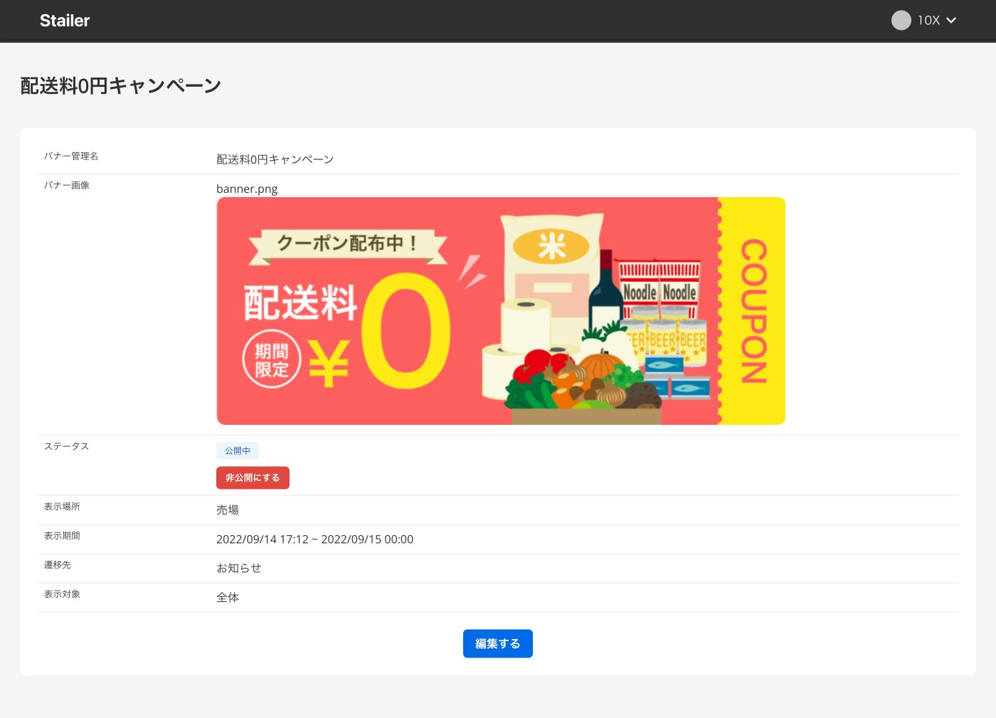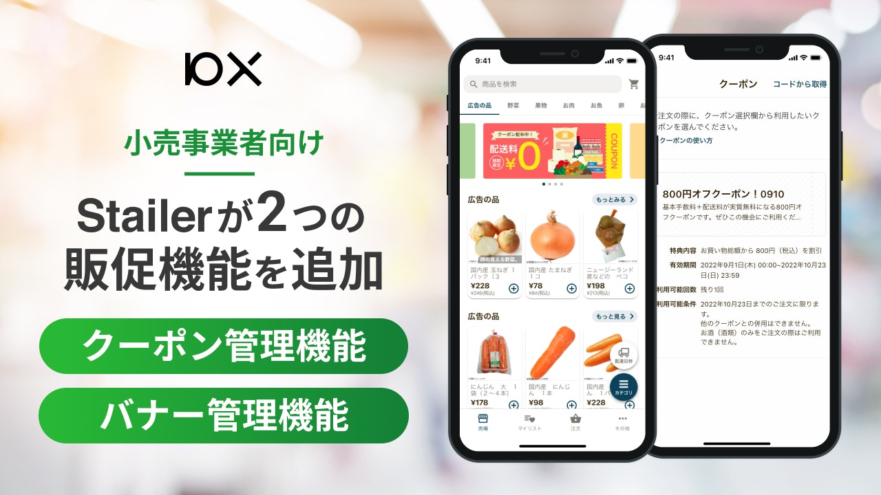 株式会社10X(本社:東京都中央区、代表取締役CEO 矢本 真丈、以下10X)は、同社が提供する小売ECプラットフォーム「Stailer(ステイラー)」を利用する小売事業者向けに2つの新機能「クーポン管理機能」「バナー管理機能」の提供を開始しました。ネットスーパー、ドラッグストアECにおける販売促進機能の充実を図ります。