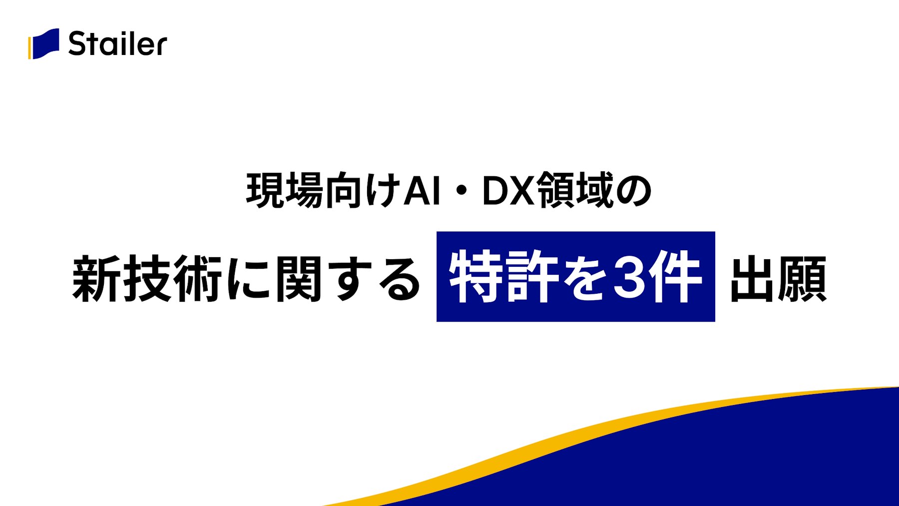 「現場向けAI・DX」領域のStailer新技術に関する特許を3件出願