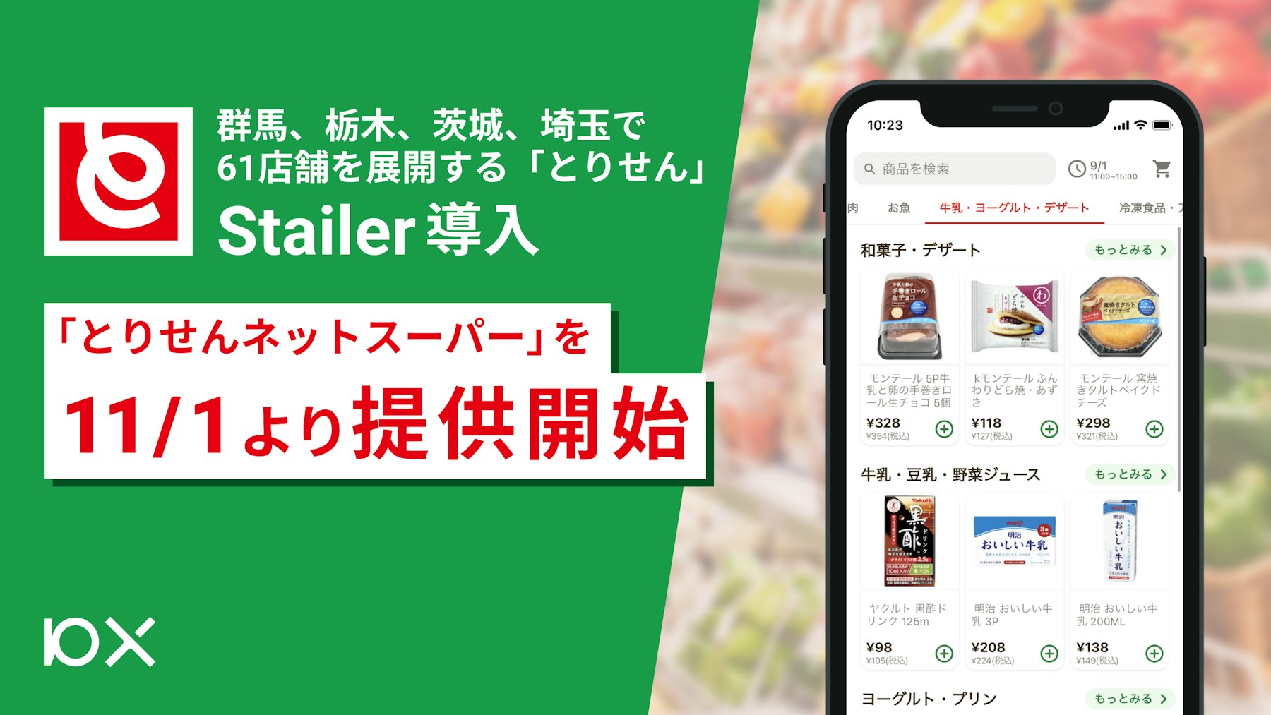 株式社10X(本社:東京都中央区、代表取締役CEO 矢本 真丈、以下10X)は、群馬、栃木、茨城、埼玉で61店舗を展開する「とりせん」が手掛けるネットスーパー「とりせんネットスーパー」において、お客様アプリおよびスタッフ向けオペレーションシステムの提供を開始します。本サービスは10Xが運営する小売EC向けプラットフォーム「Stailer」を通じて提供します。