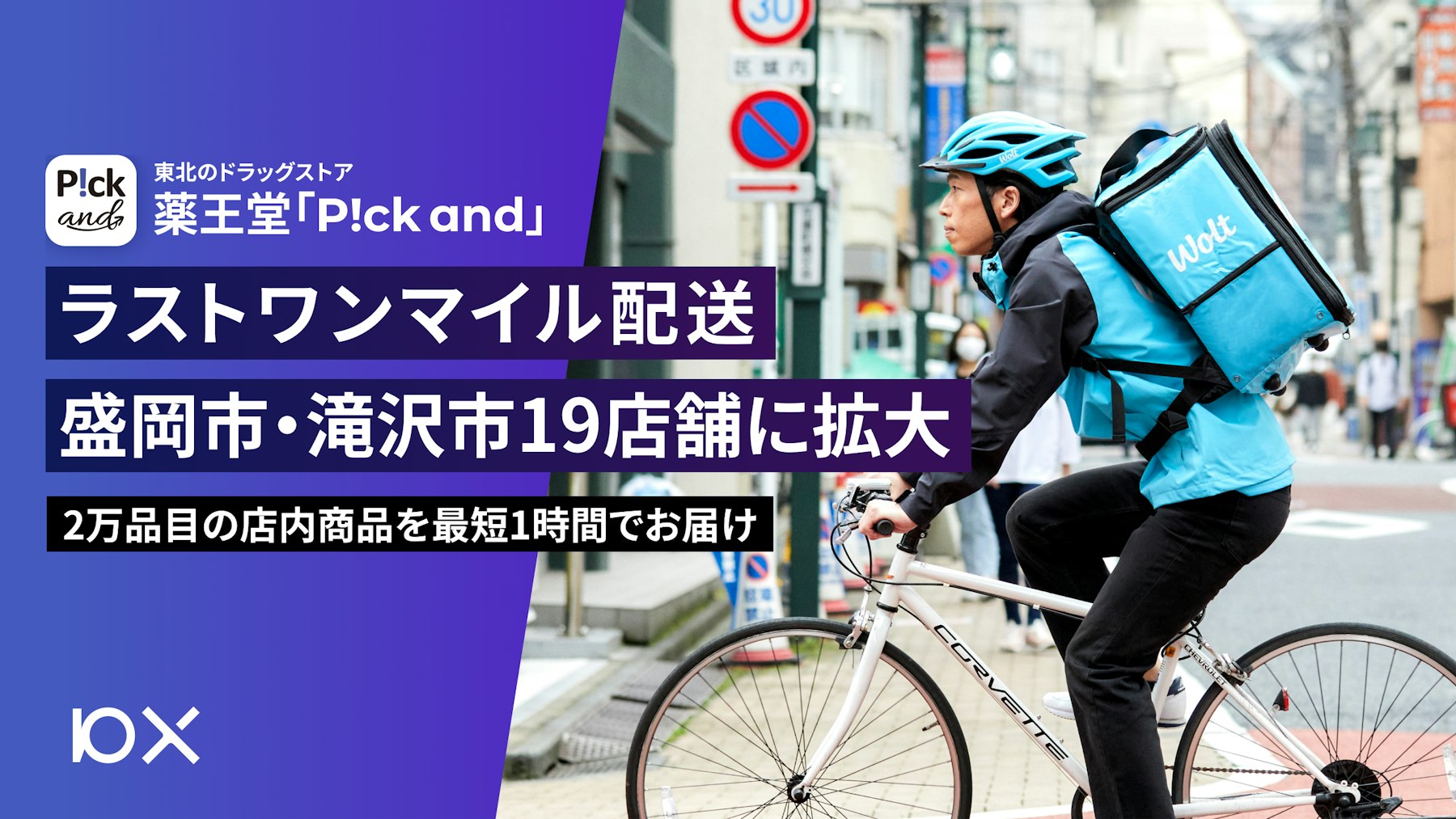 株式会社10X(本社:東京都中央区、代表取締役CEO 矢本 真丈、以下10X)は、同社が小売ECプラットフォーム「Stailer(ステイラー)」を通じて提供する薬王堂「P!ck and」アプリにて「Wolt Drive」を活用したラストワンマイル配送の対象エリアを、2022年11月29日より盛岡渋民店を除く盛岡市・滝沢市19店舗に拡大します。